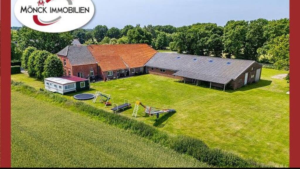 Etwa 10 Kilometer von der Auricher Innenstadt entfernt befindet sich auf einem 6.382 m² großen Grundstück dieser ehemalige Bauernhof. Eine vom Eigentümer beantragte Bauvoranfrage wurde positiv beschieden, wonach in der Scheune maximal fünf weitere Wohnungen errichtet werden können. Vielleicht verfolgen Sie aber ganz andere Ziele und Ihnen würde neben der Hauptwohnung eine weitere Wohnung genügen, um das Verkaufsobjekt als Mehrgenerationenhaus zu nutzen.