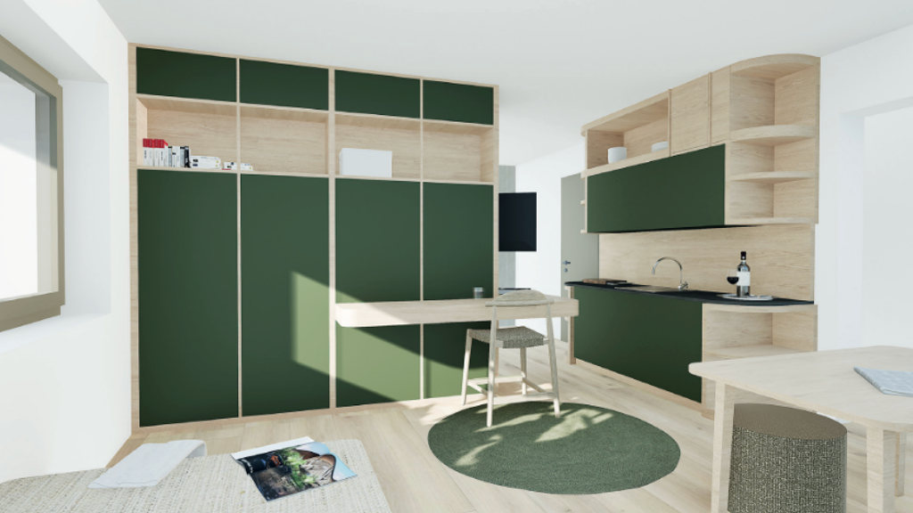 Die Apartments Ăźberzeugen durch intelligent geplante Grundrisse, groĂzĂźgige Fensterflächen mit hoher Lichtausbeute sowie eine moderne Materialauswahl mit warmen Holzelementen. Innovative StauraumlĂśsungen und eine vollständige Ausstattung machen die Einheiten bezugsfertig und besonders attraktiv fĂźr Mieter wie Studierende, Berufstätige und Pendler.