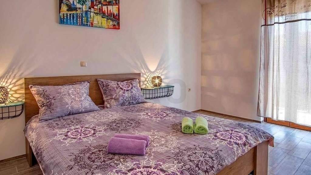 Insel Krk, Krk, Umgebung, mediterrane Doppelhaushälfte mit zwei Wohneinheiten und zwei Swimmingpools mit wunderschönem Blick auf das Meer. Eine Doppelhaushälfte in ruhiger Lage hat eine Fläche von 350 m2, das Haus verfügt über zwei Etagen, Erdgeschoss und Obergeschoss. Im Erdgeschoss jeder Wohneinheit gibt es eine Eingangshalle, ein Schlafzimmer, ein Badezimmer, eine Treppe, ein großes Wohnzimmer mit Esszimmer, eine in einer Einheit vereinte Küche, von der aus man auf die überdachte Außenterrasse gelangt mit Sonnendeck und Swimmingpool. Die Innentreppe jeder Wohneinheit führt in die erste Etage, wo sich drei Schlafzimmer mit jeweils eigenem Bad und Zugang zu einem Balkon mit herrlichem Blick auf das Meer befinden. Die Doppelhaushälfte verfügt über einen angelegten Garten mit Liegewiese, zwei ausgestattete Swimmingpools, zwei Außenduschen, zwei Abstellräume, ein besonderer Platz im angelegten Garten ist ein Pavillon mit Grill. Zu jedem Haus gehören zwei Parkplätze. Heimstätte. Zur Ausstattung der Doppelhaushälfte gehören hochwertige Keramik, PVC-Zimmerei, hochwertige Sanitärkeramik, TV, Klimaanlage in allen Räumen. Diese Immobilie ist Eigentum einer natürlichen Person. Das Anwesen verfügt über ein etabliertes Vermietungsgeschäft und ständige Gäste, eine Investitionsmöglichkeit. Der Verkäufer garantiert eine saubere Eigentumsdokumentation des Hauses.