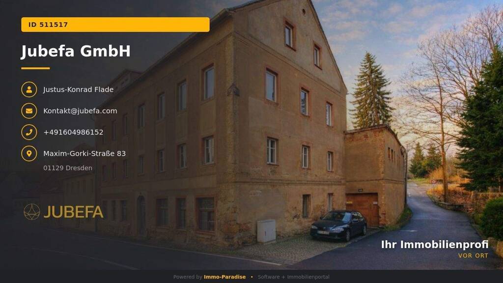 Das Objekt wird ausdrücklich als Projektimmobilie angeboten; Verkauf wie besichtigt. Besichtigungen sind nach Vereinbarung möglich. Bei Interesse bitten wir um eine kurze Vorstellung Ihres Vorhabens.