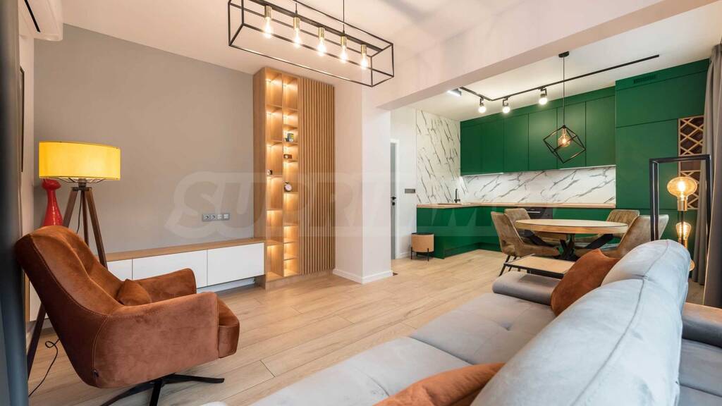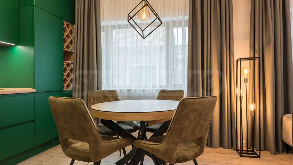 Die Wohnung wurde nach einem Designerprojekt fertiggestellt, wobei Bodenbeläge und Möbel komplett erneuert wurden. Das Gebäude wurde außerdem außen isoliert und Kömmerling-PVC-Fenster eingebaut.