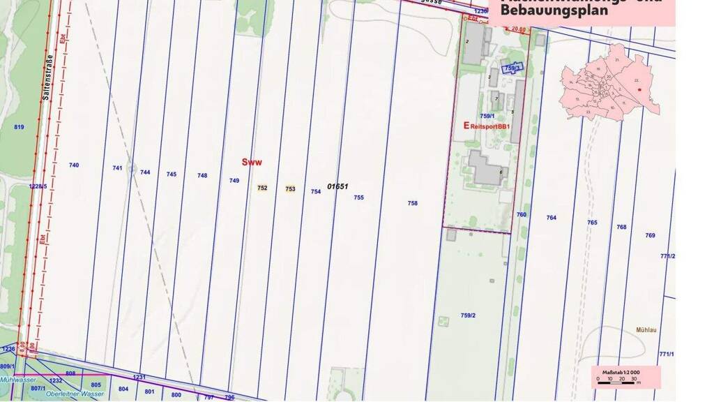 Diese landwirtschaftliche Flächen umfassen insgesamt 20.344 m². Gemäß dem derzeit gültigen Flächenwidmungsplan ist das Areal als SWW Schutzgebiet Wald- und Wiesengürtel ausgewiesen.