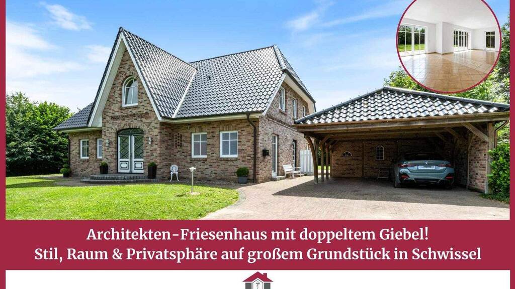 Dieses imposante Friesenhaus mit doppeltem Friesengiebel vereint traditionellen Charme mit moderner Wohnqualität. Als individuell geplantes Architektenhaus wurde es ca. 2010 in massiver Bauweise errichtet und überzeugt durch seinen gepflegten Zustand sowie eine großzügige Wohnfläche von ca. 260?m² - ideal für Familien, Mehrgenerationenwohnen oder die Kombination aus Eigennutzung und Vermietung.