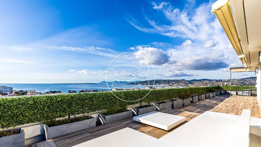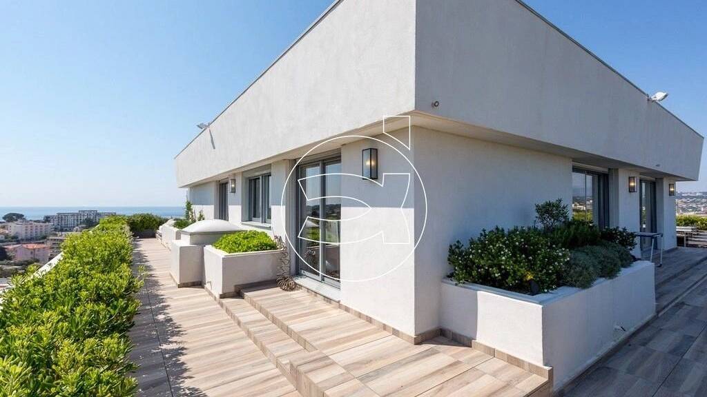 Auf halbem Weg zwischen Antibes und Juan-les-Pins befindet sich dieses prächtige Penthaus im zeitgenössischen Stil mit einer Wohnfläche von 142 m².