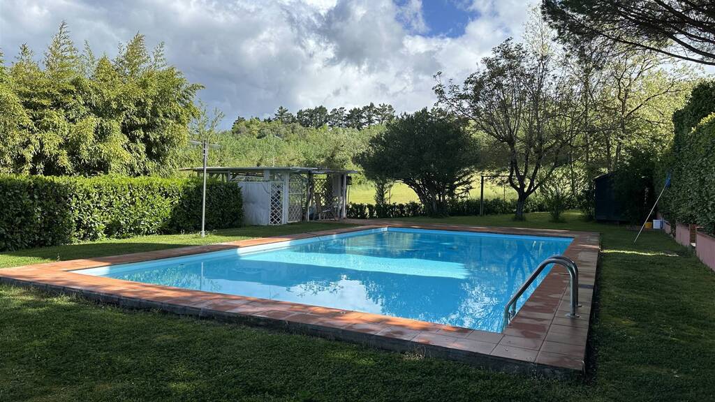 Das Anwesen ist von einem atemberaubenden Garten mit alten Pinien, Zypressen, Olivenbäumen und blühenden Pflanzen umgeben. Es ist ein friedlicher, privater Rückzugsort – perfekt gestaltet, um seine zukünftigen Besitzer in den ruhigen Rhythmus des toskanischen Landlebens einzutauchen. Der Swimmingpool vor dieser idyllischen Kulisse rundet das Erlebnis echter italienischer Entspannung ab.