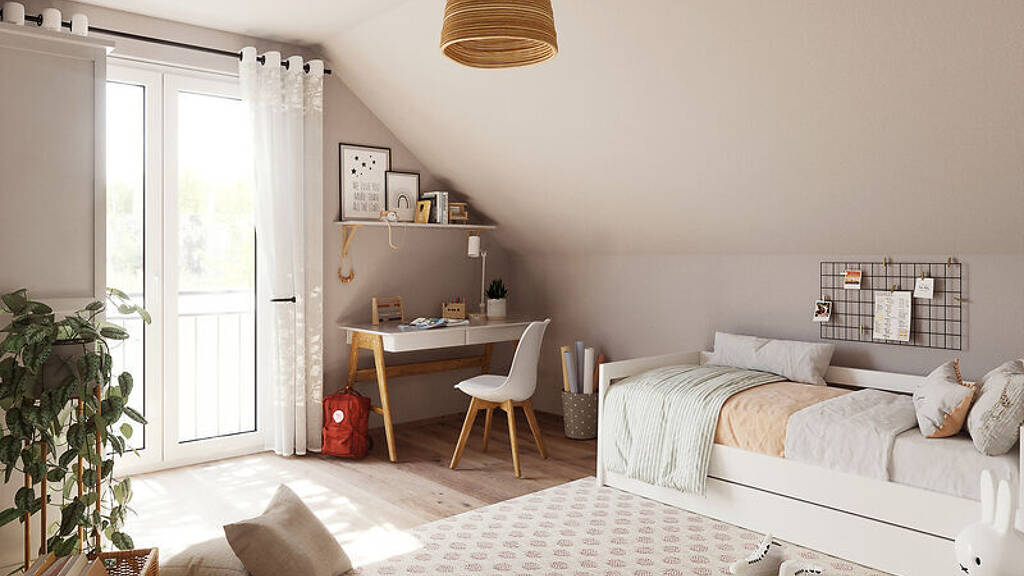 Im Dachgeschoss erwartet Sie ein großes Schlafzimmer mit eigener Ankleide. Auch die beiden weiteren Zimmer garantieren ihren Bewohnern viel Freiraum. Das Bodensee 129 ist ein Haus für Genießer – einfach gemütlich!