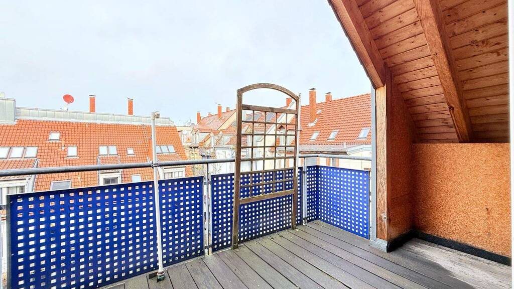 Die zweite Wohnung liegt im Dachgeschoss und umfasst ca. 55 m² Wohnfläche. Sie besteht aus einem Schlafzimmer, einem Badezimmer sowie einem großzügigen Wohn- und Essbereich mit offener Küche. Auch diese Wohnung verfügt über einen Balkon, der zusätzlichen Wohnkomfort bietet. Eine praktische Abstellkammer direkt auf der Etage gehört ebenfalls zur Dachgeschosswohnung und ergänzt das Raumangebot sinnvoll. Die Dachgeschosswohnung ist derzeit vermietet und erzielt eine monatliche Kaltmiete in Höhe von 621 €.