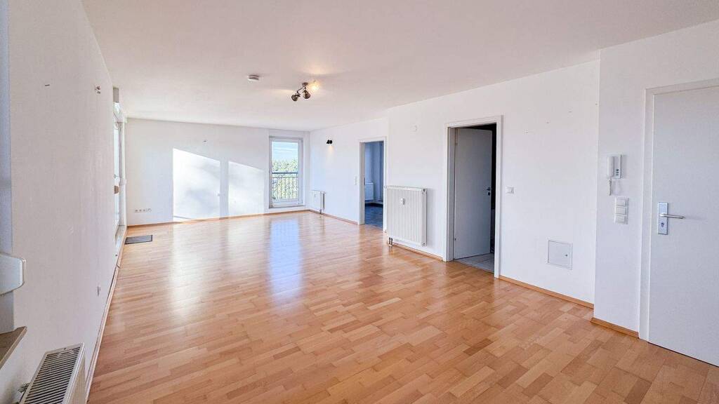 Auf knapp 97,85m² Wohnfläche entfaltet sich ein gut strukturierter Grundriss, der sowohl offenen Wohnkomfort als auch private Rückzugsbereiche ermöglicht. Der Wohnbereich präsentiert sich weitläufig und lichtdurchflutet und bildet das Herzstück der Wohnung. Ergänzt wird das Raumangebot durch eine eigenständige Küche, ein ruhig gelegenes Schlafzimmer sowie einen weiteren Raum, der flexibel als Homeoffice, Gäste- oder Kinderzimmer genutzt werden kann.