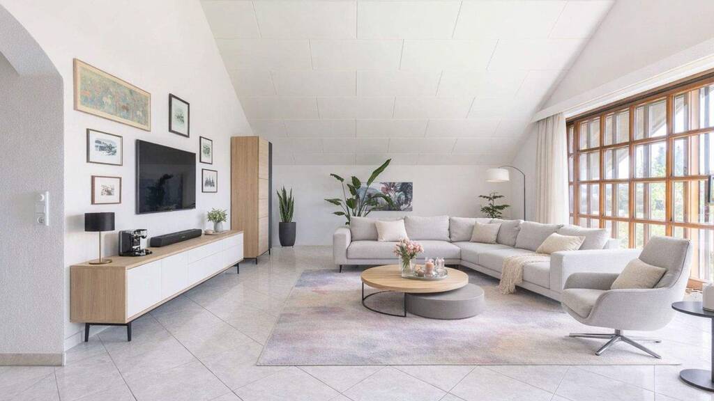 » 3-Zimmer-Dachgeschosswohnung, großzügig geschnitten, erstklassig ausgestattet » Gepflegtes 2-Parteien-Haus, Zugang über gemeinsames Treppenhaus » Südseitiger Wohn-Essbereich mit offenem Dachstuhl, Essecke und großer Fensterfront » Traumhafte Dachterrasse + überdachte Loggia » Küche, Gäste-WC, Garderobe zentral, 2 Zimmer + Bad separat als Rückzugsorte » Kombination aus hochwertiger Ausstattung, viel Licht und großzügigem Außenbereich