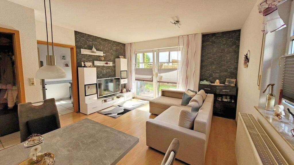 Diese gemütliche Eigentumswohnung befindet sich in einer gepflegten Anlage mit drei Häusern und insgesamt 18 Wohnungen. Die Wohnung liegt im EG und besteht aus Wohnzimmer, Schlafzimmer, Küche, Bad mit Wanne und Dusche, Terrasse, Kellerraum und einem überdachten Stellplatz.