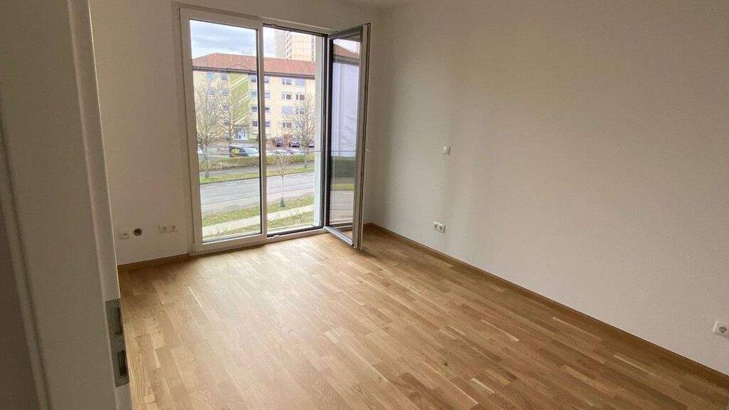 Der Wohn- und Essbereich mit offener Küche bietet Ihnen viel Platz für Ihre individuelle Einrichtung sowie direkten Zugang zum überdachten Balkon.
