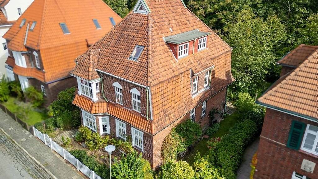 Dieses einzigartige, historisch wertvolle Einzeldenkmal aus dem Baujahr 1914 befindet sich auf einem 488 m² großen Grundstück in erstklassiger Lage, direkt am Bürgerpark mit Blick in den Wald. Das dreigeschossige Haus bietet eine Wohnfläche von insgesamt 236 m² und ist voll unterkellert.