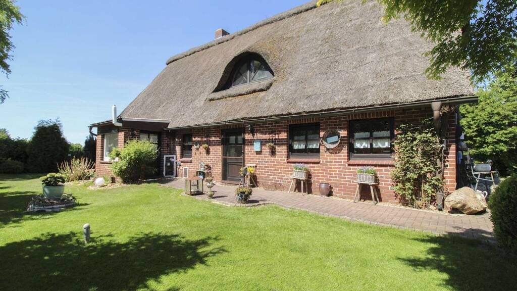 In idyllischer Feldrandlage von Wischhafen befindet sich dieses charmante Reetdachhaus aus dem Jahr 1900 - ein echtes Unikat mit Charakter, das Familien ein außergewöhnliches Zuhause mit viel Platz und Privatsphäre bietet. Auf einem weitläufigen Grundstück von rund 3.781 Quadratmetern eröffnet sich eine ganz besondere Atmosphäre, die schon bei der Anfahrt über die eigene Allee spürbar wird. Diese eindrucksvolle Zufahrt ist nicht nur für die Bewohner, sondern auch für Gäste der separaten Ferienwohnung ein echtes Highlight.