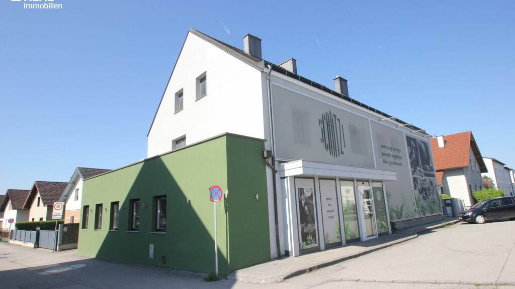 Im Erdgeschoss befand sich über Jahrzehnte hinweg eine bekannte Fleischerei mit eigenem Verkaufsgeschäft, wobei dieses im Jahr 2000 um einen Zubau für den jetzigen Imbiss-/Bistrobereich erweitert wurde. Die gesamte Nutzfläche im Erdgeschoss beträgt ca. 245 m².