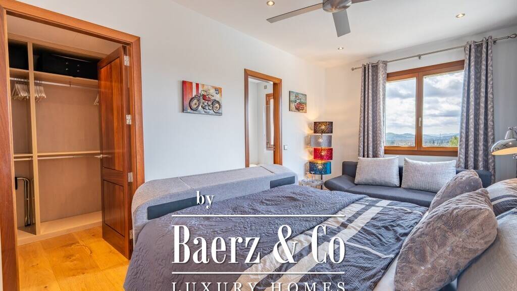 set in one of the most sought-after locations in the north of mallorca, the 0.6-acre property enjoys a superb position. from its elevated, south-orientated setting, the house offers unobstructed panoramic views across the greens, the rolling mountains, and out towards the sparkling bays of pollensa and alcudia. due to the intelligent positioning and landscaping of the property, the villa, pool, and terraces enjoy complete privacy.