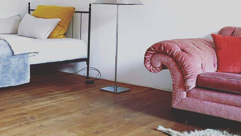 In der oberen Etage wohne ich selbst und nutze lediglich die Küche ab und zu. Das Haus war einmal ein altes Fitnessstudio, welches wir mit sehr viel Liebe und schönen Materialien umgebaut haben. Beide Bäder sind aus Tadelakt, in der Küche gibt es marokkanische Fliesen und die Zimmer sind mit Eichenparkett ausgelegt.