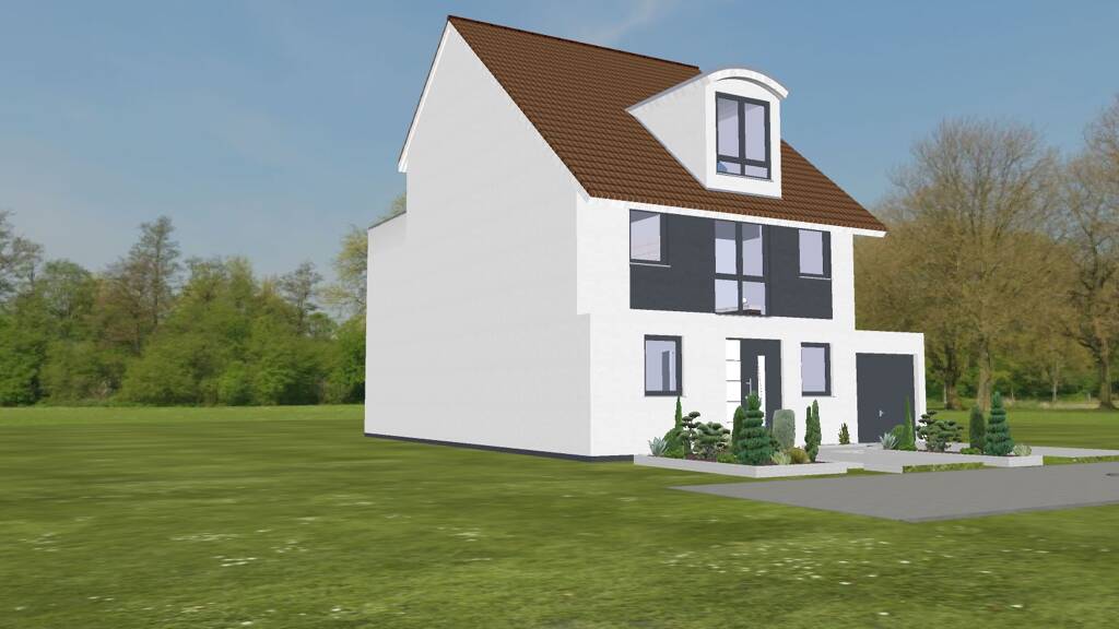 Beim Betreten des Hauses gelangen Sie in eine einladende Diele, die direkt in den großzügigen Wohn- und Essbereich mit direktem Zugang zum Garten übergeht. Hier verbindet sich moderne Architektur mit behaglicher Wohnatmosphäre. Ein Abstellraum sorgt für zusätzlichen Stauraum, während ein separates Gästezimmer vielfältige Nutzungsmöglichkeiten bietet. Abgerundet wird das Erdgeschoss durch ein modernes Duschbad sowie einen praktischen Haustechnikraum.