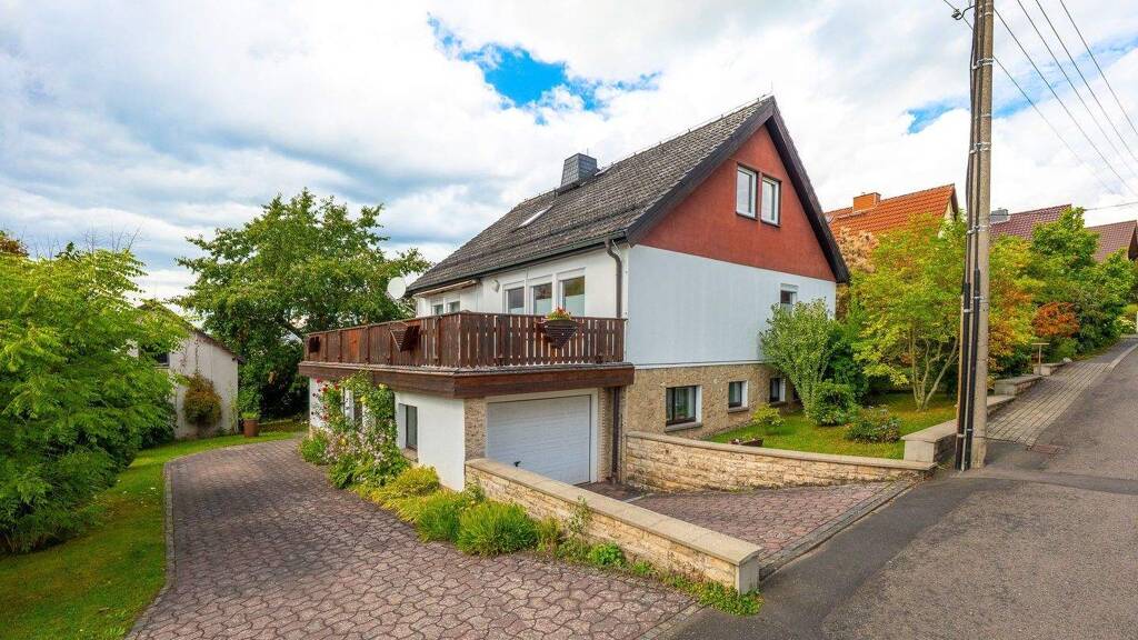 Ihr neues Eigenheim liegt idyllisch in einer Wohnsiedlung am Rande von Stadtlengsfeld. Begrüßt werden Sie durch einen liebevoll gestalteten Vorgarten und ihrer Garageneinfahrt unterhalb der prominenten Dachterrasse. Für weitere PKW steht die Einfahrt neben der Garage zur Verfügung.