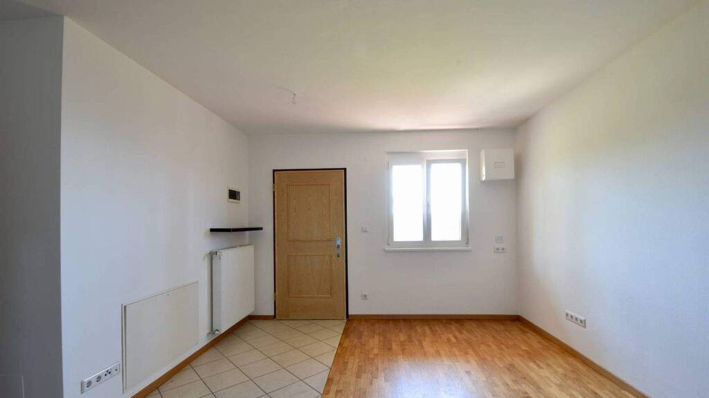 Die Wohnfläche verteilt sich auf ein helles Wohnzimmer mit Zugang zur Terrasse, ein Schlafzimmer, eine separate Küche sowie ein Badezimmer mit Badewanne. Ein traditioneller Kachelofen sorgt für gemütliche Wärme, während eine Umluftanlage, elektrische Rollläden und die zentrale Heizung über das Fernheizwerk Klobenstein modernen Wohnkomfort garantieren.