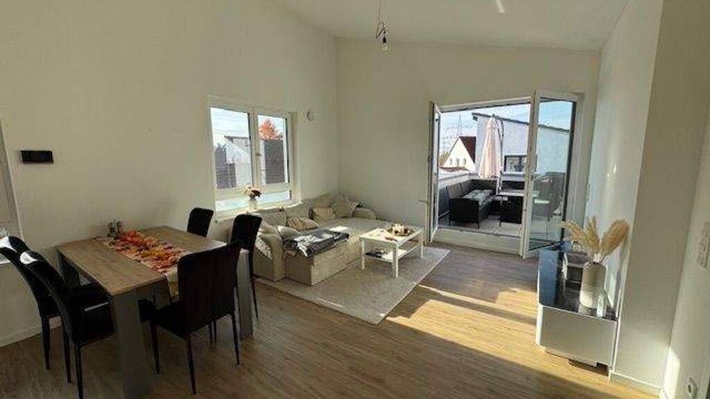 Diese moderne 2,5-Zimmer-Wohnung bietet alles, was ein junges Paar sich für den nächsten gemeinsamen Lebensabschnitt wünscht: viel Platz, ein durchdachter Grundriss, hochwertige Ausstattung und ein helles Wohngefühl. Die große Terrasse erweitert den Wohnraum nach draußen und ist ein echtes Highlight. Sie schafft mit Platz für Loungemöbel, einen kleinen Esstisch und ein paar Pflanzen einen idealen Ort für entspannte Abende und gemeinsame Frühstücke im Sommer.