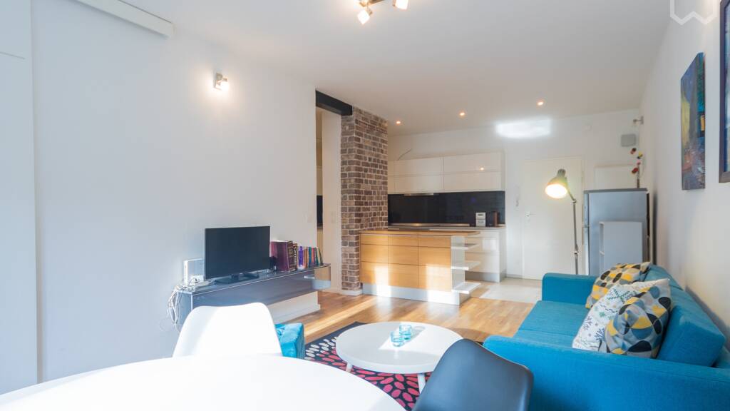 Stilvolle Wohnung, die 2021 vollständig renoviert wurde. Offenes Empfangszimmer mit voll ausgestatteter Küche, einschließlich Geschirrspüler und Waschmaschine. Zwei Schlafzimmer: Ein Schlafzimmer mit Doppelbett und eingebautem Schrank. Das zweite Schlafzimmer kann auch als Büro genutzt werden, da es über ein Schlafsofa und einen Schreibtisch verfügt. Viel Stauraum. Das Highlight ist das Badezimmer mit Jacuzzi-Badewanne. Es gibt außerdem eine separate Dusche. Der große Balkon bietet einen Blick auf den grünen Hinterhof. WLAN vorhanden. Anmeldung möglich.