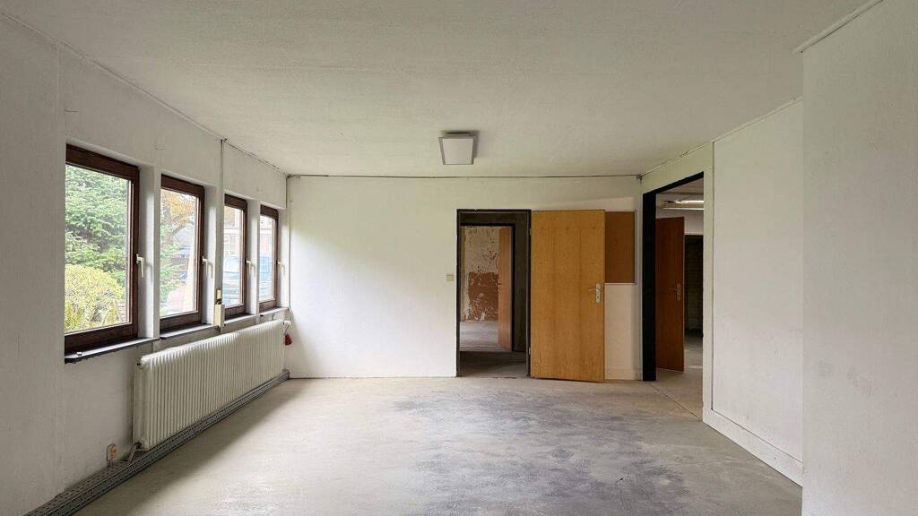 Vermietet wird eine Einheit mit insgesamt ca. 391,5 m² Fläche. Es handelt sich um eine geräumige Halle für die individuelle Nutzung wie z.B. Lager, Unterstellhalle oder Produktionshalle. Es besteht die Möglichkeit, Büros einzurichten. WC und Aufenthaltsraum sind ebenfalls vorhanden. Zahlreiche Fensterflächen sorgen für eine gute Belichtung. Die Halle ist aufgrund der interessanten Bauweise in Lager-/Produktionsbereiche sowie in diverse Büroräume unterteilbar. Es bestehen insgesamt 4 Ein-/Ausgänge.