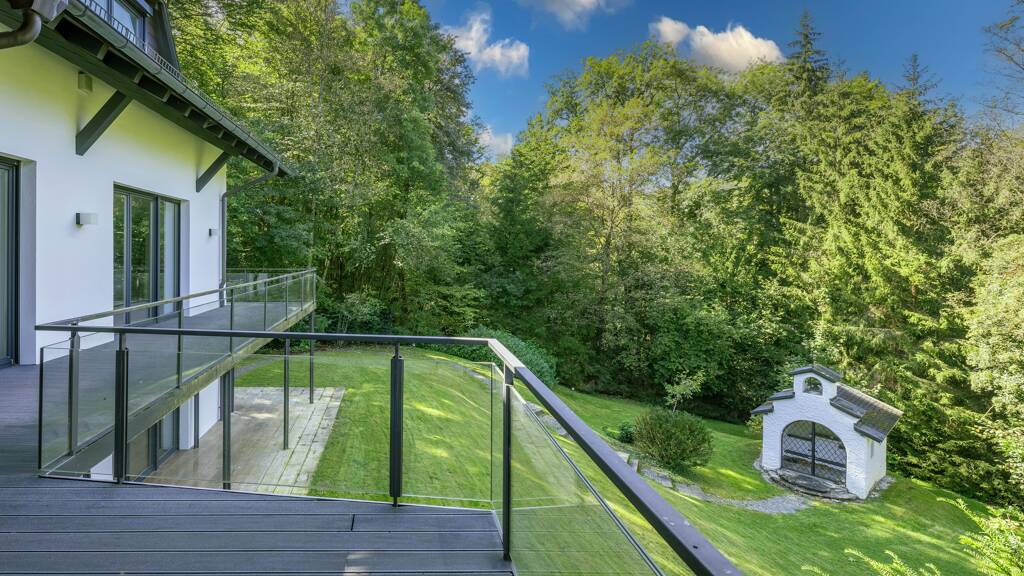 Ruhige Lage. Direkt an der Isar. Im Ortszentrum von Grünwald. Grünwald im Landkreis München hat etwa 11.000 Einwohner. Das Gemeindegebiet liegt rund 12 km südlich vom Stadtzentrum Münchens und grenzt im Norden an den Stadtteil Harlaching - Menterschwaige. Der Ortskern bietet die breite Palette einer gewachsenen Infrastruktur. Praktische Ärzte, Zahn- u. Fachärzte, Apotheken, Kirchen beider Konfessionen, Geschäfte nahezu aller Branchen und exklusive Boutiquen sind im Bereich der Gemeinde angesiedelt. Das gastronomische Angebot erstreckt sich äußerst vielfältig von guten Schnellversorgern über vielerlei internationale Küchen bis hin zu exklusiven Gourmet- Restaurants. Darüber hinaus verfügt Grünwald über zahlreiche Banken, Handwerksbetriebe und Einzelhandelsgeschäfte. Für Kinder und Familien bietet sich in Grünwald nahezu ein Eldorado. Die Grundschule, sowie ein Gymnasium sind im Ort. Eine Hauptschule befindet sich im Nachbarort Pullach. Benachbarte Gymnasien in Oberhaching, Harlaching, Pullach, Solln und Schäftlarn / Icking, sowie die Munich International School bei Starnberg bieten eine breite Palette für die Ausbildung. Die Kleinsten finden in mehr als sieben privaten oder öffentlichen Kindergärten und Krippen teilweise mit Ganztagesbetreuung einen Platz. Für Familien aus dem Ausland existiert auch eine internationale Pre- School! Sportlich bietet die Gemeinde ein breites Angebot. Im Grünwalder Freizeitpark sind Anlagen, für zahlreiche Ballsportarten, ein modernes Hallenbad mit Saunalandschaft und sogar ein Kletterturm zu finden. Für Golfer ist der Golfplatz Straßlach bequem zu erreichen. Die Verkehrsverbindungen nach München sind gut; das Zentrum Münchens erreichen Sie in 20 Autominuten; mit der traditionellen Straßenbahn der Linie 25, in etwa 40 Min. Über die Grünwalder Brücke besteht eine nahe Verbindung zu den westlichen Stadtteilen Münchens. Die nächsten S-Bahn Stationen befinden sich westlich im knapp 3 km entfernten Höllriegelskreuth S 7 und östlich im schnell erreichbaren, 5 km entfernten Deisenhofen S 3.