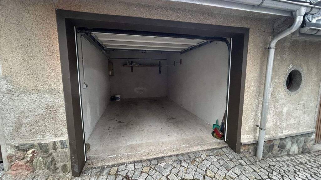 Auf der Hausrückseite erstreckt sich ein Garten in Hanglage. Verschiedene Ziersträucher, Beete und Gewächshäuser etc. befinden sich hier und warten auf eine Wiederbelebung. Nur wenige Schritte vom Wohnhaus entfernt, befindet sich eine Garage - diese gehört mit zu unserem Angebot.
