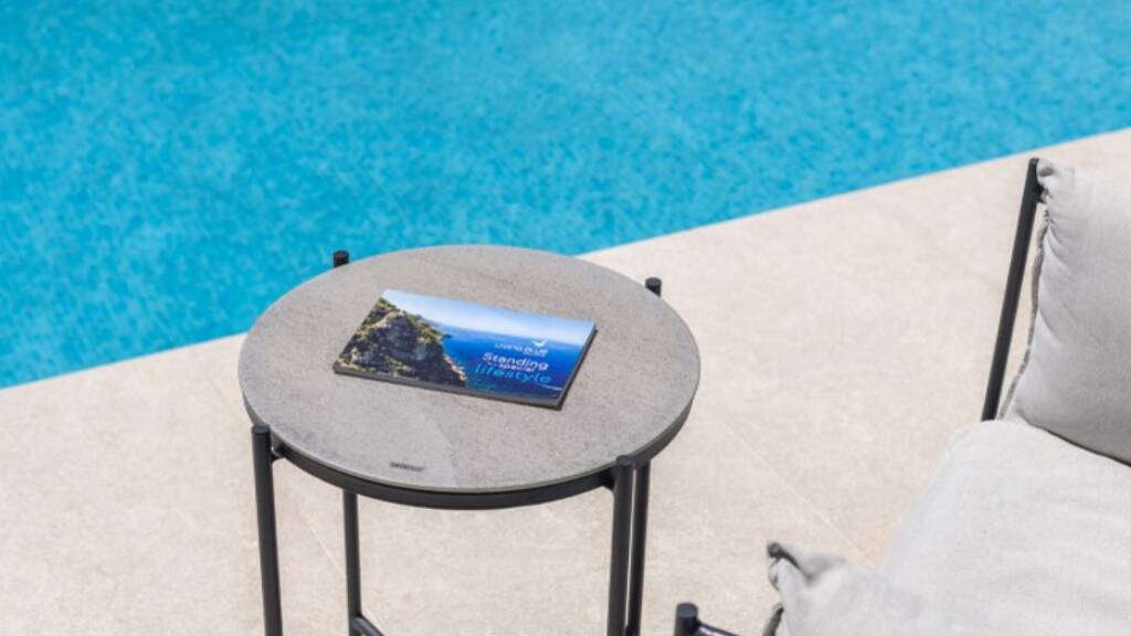 Der Außenbereich ist mediterran gestaltet und wird durch einen Salzwasserpool ergänzt, der von Obstbäumen und gepflegten Gartenflächen umrahmt wird. Verschiedene Terrassen und Sitzbereiche laden dazu ein, die besondere Atmosphäre dieses Ortes zu genießen. Ein Bewässerungssystem unterstützt die Pflege der weitläufigen Anlage und macht sie besonders wartungsarm.