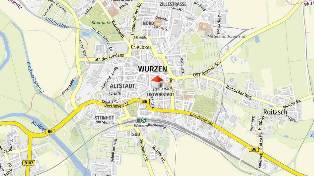 Wurzen ist eine Große Kreisstadt im Nordosten des Landkreises Leipzig in Sachsen. Die Stadt ist seit 900 Jahren Domstadt und damit zugleich Zentrum und Namensgeberin des Wurzener Landes. Das Mehrfamilienhaus befindet sich ca. 10 Gehminuten vom Zentrum entfernt.