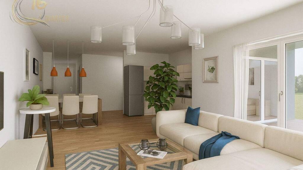 Ein besonderer Vorteil des Projekts ist die flexible Grundrissgestaltung, die - abhängig vom Baufortschritt - individuelle Anpassungen nach Absprache ermöglicht. Vom Wohnbereich aus ist ein direkter Zugang zur Terrasse mit angrenzendem Außenbereich vorgesehen. Die geplante Fläche der Terrasse beträgt ca. 19,88 m² und bietet zusätzlichen Raum für Erholung im Freien.