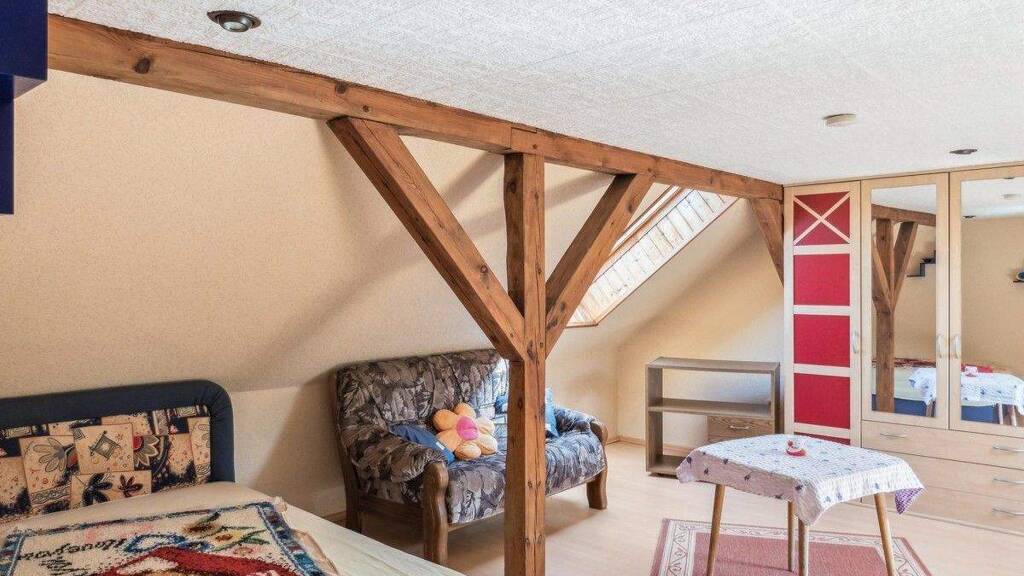Das Haus wurde 1990 umfassend saniert, wobei der Dachstuhl 1991 komplett erneuert und 1994 eine komplette Innensanierung durchgeführt wurde. Die Heizung sowie Fenster und Türen wurden 1996 erneuert, was zur Effizienz und zum Komfort des Hauses beiträgt. Die Kunststofffenster sind doppelt isoliert und die Wände gedämmt, was die Heizkosten niedrig hält - die monatlichen Unterhaltungskosten belaufen sich auf etwa 235 €.