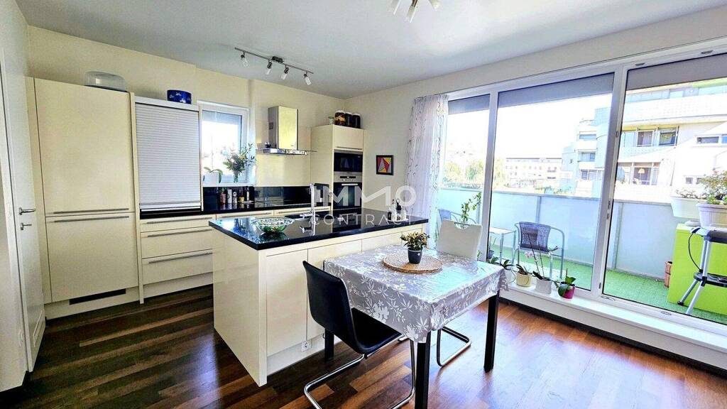 Das Herzstück der Wohnung bildet der großzügige Wohn-/Essbereich mit moderner, offener Küche, die perfekt in den Raum integriert ist und sowohl für gemütliche Abende als auch für gesellige Momente mit Gästen viel Platz bietet. Die Küche ist mit allen wichtigen hochwertigen Elektrogeräten ausgestattet. Der anschließende Abstellraum bietet genug Staufläche und Platz für die Waschmaschine. Das Schlafzimmer mit Blick in die ruhige Anlage schafft einen ruhigen Rückzugsort.