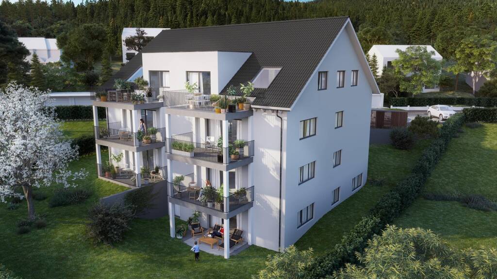 Auf dem letzten noch frei verfügbaren Grundstück in der Obermattstraße erstellen wir ein attraktives Mehrfamilienwohnhaus mit 7 Wohneinheiten in Niedrigenergiebauweise gem. GEG mit Kellergeschoss, Außenanlage und Liftanlage. Auf 4 Etagen entstehen insgesamt 7 Wohnungen als 3-Zimmer Wohnungen in moderner und lichtdurchfluteter Architektur. Die Wohnflächen sind in einer Größenordnung von 78 m² bis max. 100 m² konzipiert. Unsere Grundrisse sind modern und zeitgemäß zugleich. Für Wohlfühlmomente sorgen die großzügigen Fensterelemente in den Wohnbereichen, die für ein helles und angenehmes Raumgefühl sorgen. Alle Wohnungen erhalten topmodern gestaltete Bäder mit bodeneben gefliesten Duschen sowie großzügige, nach Süden ausgerichtete Balkone, in der UG-Wohnung W01 und in der EG-Wohnung W02 als Terrasse.
