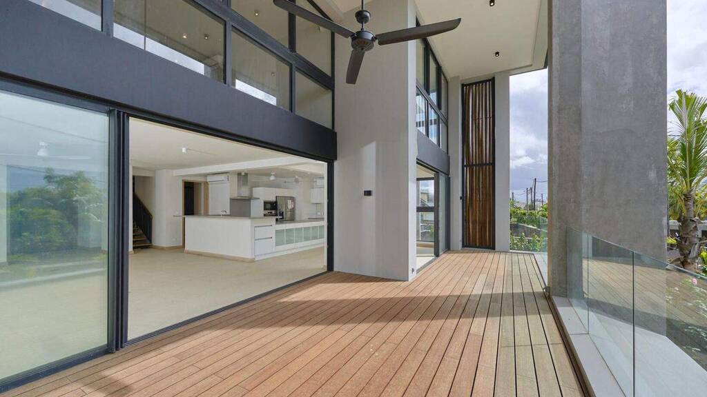 Eingebettet in einen intimen Komplex mit nur neun prestigeträchtigen Wohnungen, verführt dieses als echtes Haus entworfene Doppelhaus mit seiner Eleganz und kultivierten Atmosphäre. Beim Betreten offenbart sich ein geräumiger Wohnbereich, der im Licht getaucht ist, darunter ein Wohnzimmer, ein Esszimmer und eine offene Küche mit hochwertigen Oberflächen. Dieser Raum öffnet sich zu einer großen überdachten Terrasse, perfekt zum Bewundern der Sonnenuntergänge über dem Ozean und um Momente der Entspannung in völliger Ruhe zu genießen. Ein funktionales Büro vervollständigt den Grundriss und bietet die Möglichkeit, berufliches und privates Leben miteinander zu vereinen. Auf der Nachtseite verfügt das Doppelhaus über vier Schlafzimmer mit eigenem Bad, die als echte Hotelsuiten gestaltet sind und Komfort und Privatsphäre vereinen. Zu den Einrichtungen der Residenz gehören ein Aufzug, ein privater Parkplatz und ein spezieller Lagerraum, der Komfort und Praktikabilität für das tägliche Leben bietet. Dieses seltene Anwesen vereint Raum, Modernität und Raffinesse in einer exklusiven Umgebung - ideal für alle, die einen gehobenen Wohnraum suchen, und verbindet Intimität, nahegelegene Annehmlichkeiten und das sanfte Leben des Dorfes Pointe aux Canonniers.