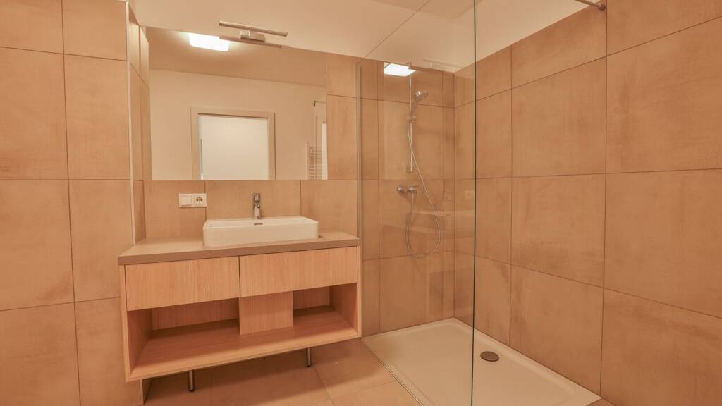 * Nassräume mit Feinsteinzeug, hochwertige Sanitärkeramik