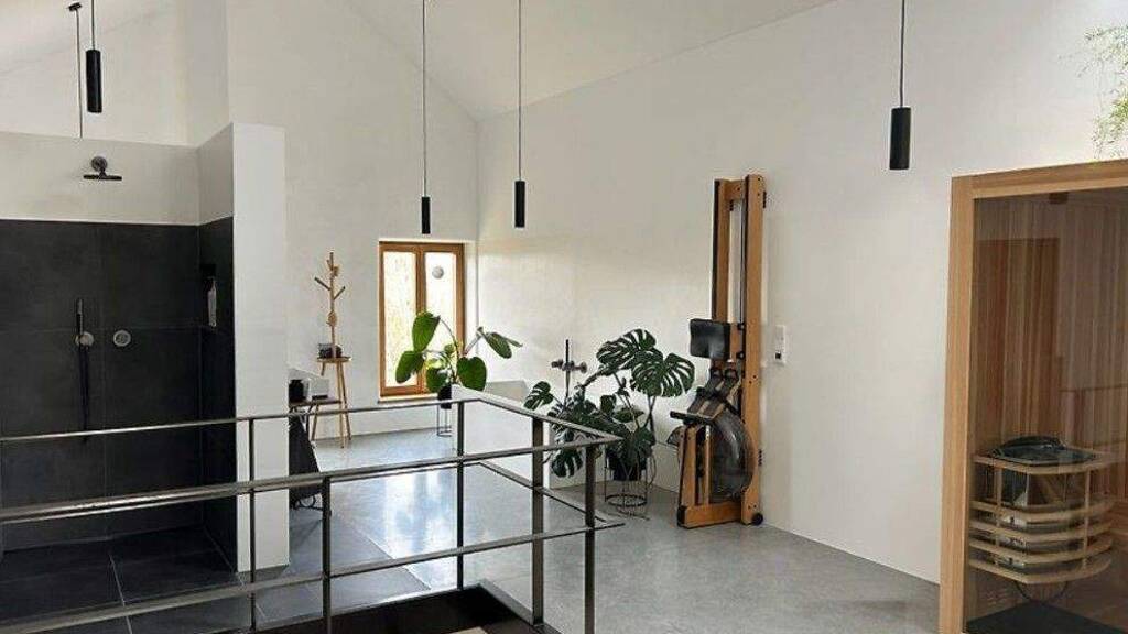 Im Dachgeschoss beeindruckt der Master-Schlafbereich mit Ensuite-Bad mit freistehender Badewanne, bodenbündiger Dusche, Doppelwaschbecken, WC-Bereich und einer 6 KW-Sauna mit Glasfront für 3 Personen. Mit Blick nach Westen ist ein weiteres Gästezimmer untergebracht. Die Dachschrägen werden als Ankleide und Abstellräume genutzt.