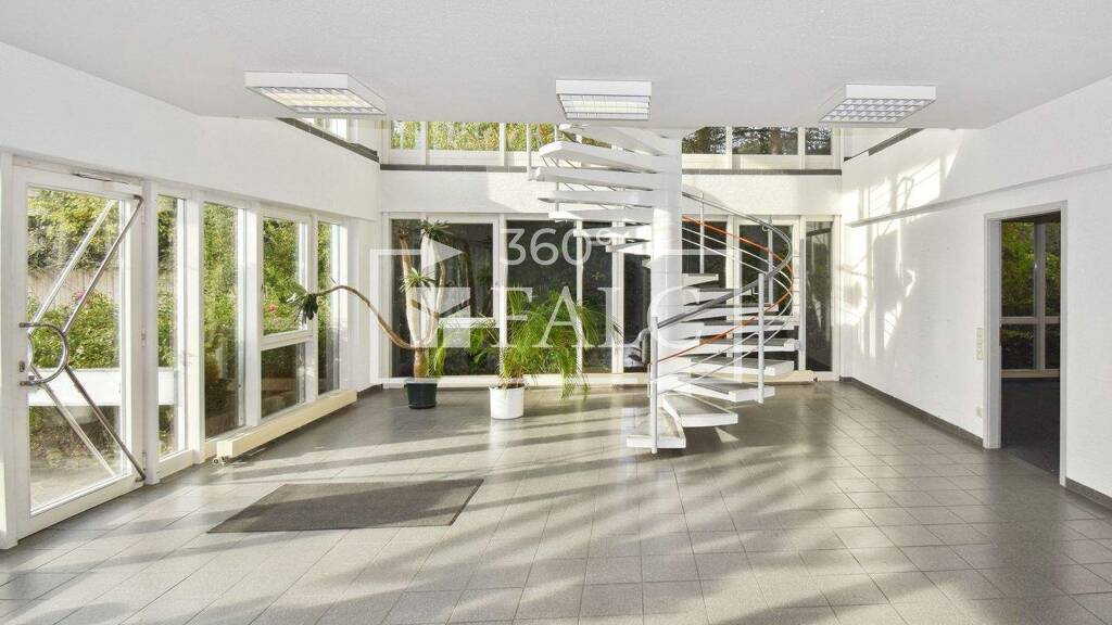 Im Erd- und Obergeschoss befinden sich repräsentative Empfangsbereiche, die durch ihre großflächigen, bodentiefen Fenster eine helle und freundliche Atmosphäre schaffen. Insgesamt stehen sechs eigenständige Büroräume, darunter zwei Großraumbüros, zur Verfügung. Die funktionale Raumaufteilung ermöglicht eine individuelle Anpassung an Ihre Anforderungen.