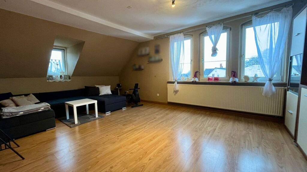 Sie bietet eine durchdachte Raumaufteilung und eignet sich ideal für Paare oder Familien. Herzstück der Wohnung ist das großzügige Wohnzimmer, das viel Platz für Wohnen und Entspannen bietet. Ergänzt wird das Raumangebot durch ein geräumiges Schlafzimmer sowie zwei kleinere Zimmer, die sich hervorragend als Kinder-, Arbeits- oder Gästezimmer nutzen lassen. Ein weiteres Zimmer befindet sich im ausgebauten Dachboden und kann flexibel als Ankleide, Hobbyraum oder zusätzlicher Stauraum genutzt werden.