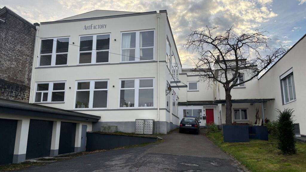 Die Gewerbefläche befindet sich im 1. OG eines traditionellen. sehr gut erhaltenen Industriegebäudes, das über eine Treppe zu erreichen ist. Die Fläche teilt sich auf in eine 112 m² große Halle mit direktem Zugang zu einem weiteren Raum mit knapp 55 m². Über eine Treppe gelangen sie auf die offene Galerie mit zwei getrennten Räumen auf insgesamt rund 52 m²; ideal nutzbar als zusätzliche Bürofläche.