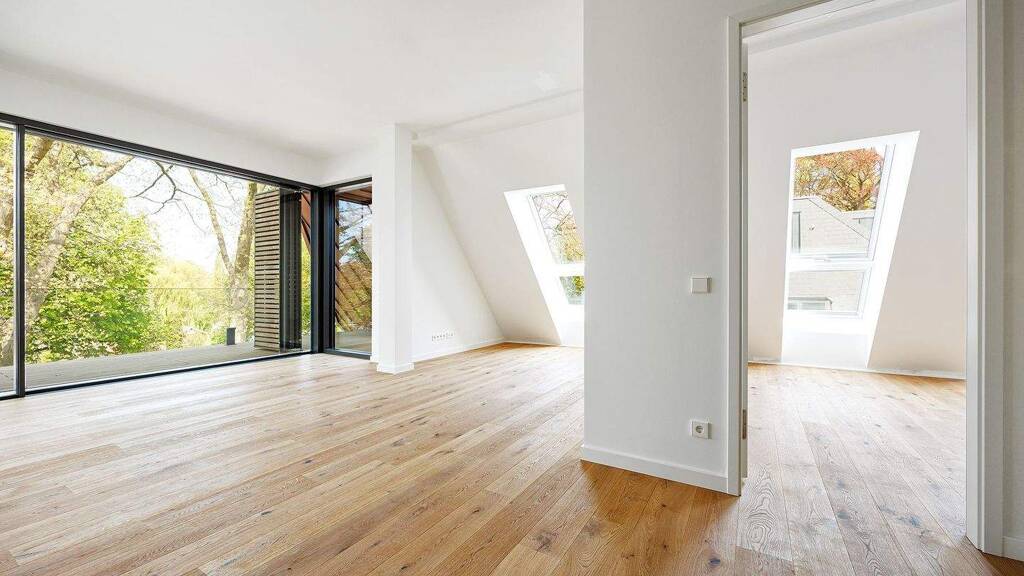 Die Wohnung präsentiert sich mit hohen Decken sowie bodentiefen Glasfronten für ein lichtdurchflutetes Raumgefühl. Eichenparkett sowie großformatiges Feinsteinzeug als Bodenbelag, Fußbodenheizung ergänzt die exklusive Ausstattung. Für die Badgestaltung wurden hochwertige Sanitärobjekte und Armaturen namhafter Hersteller gewählt.