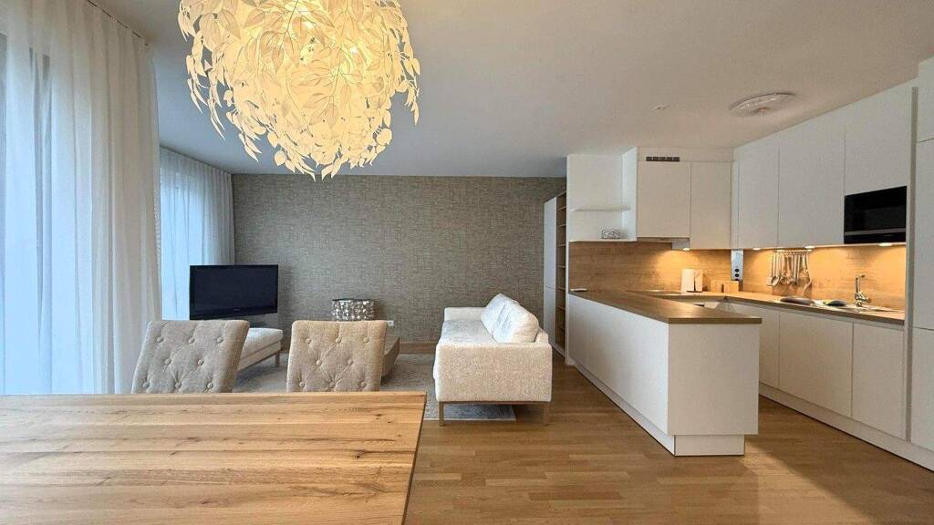 Diese außergewöhnliche Wohnung verbindet urbanes Design mit naturnahem Wohngefühl. Sie bietet exquisite Ausstattung, Klimatisierung in allen Räumen, eine durchdachte Raumaufteilung und eine 14 m² große Terrasse mit herrlichem Grünblick.