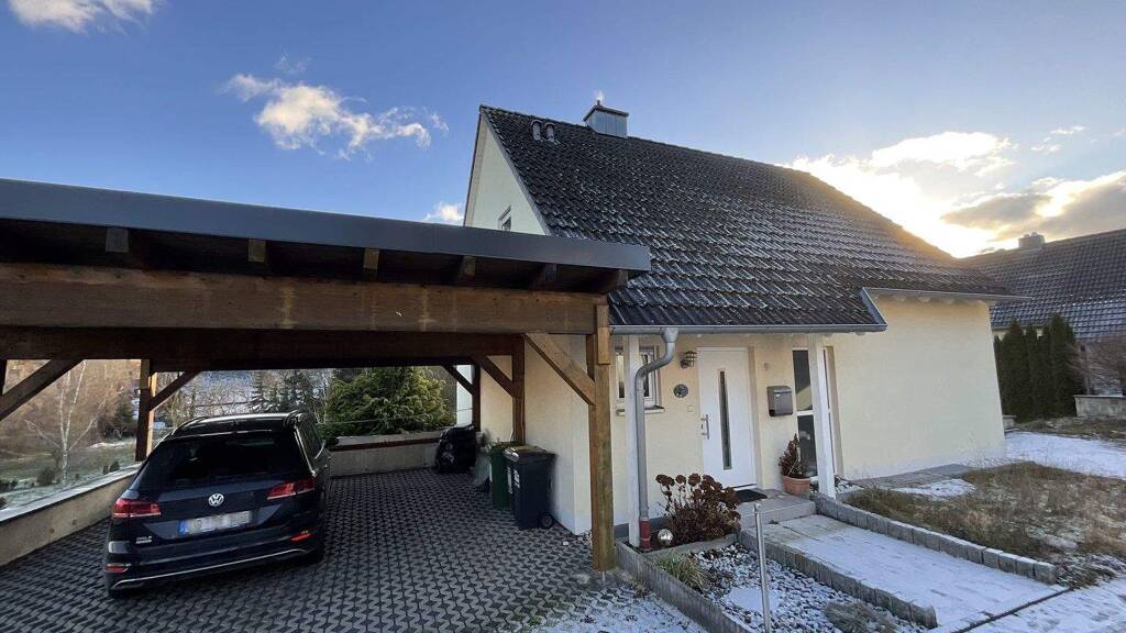 Für zusätzlichen Komfort sorgt das großzügige Carport, das bis zu zwei Fahrzeugen Schutz bietet.