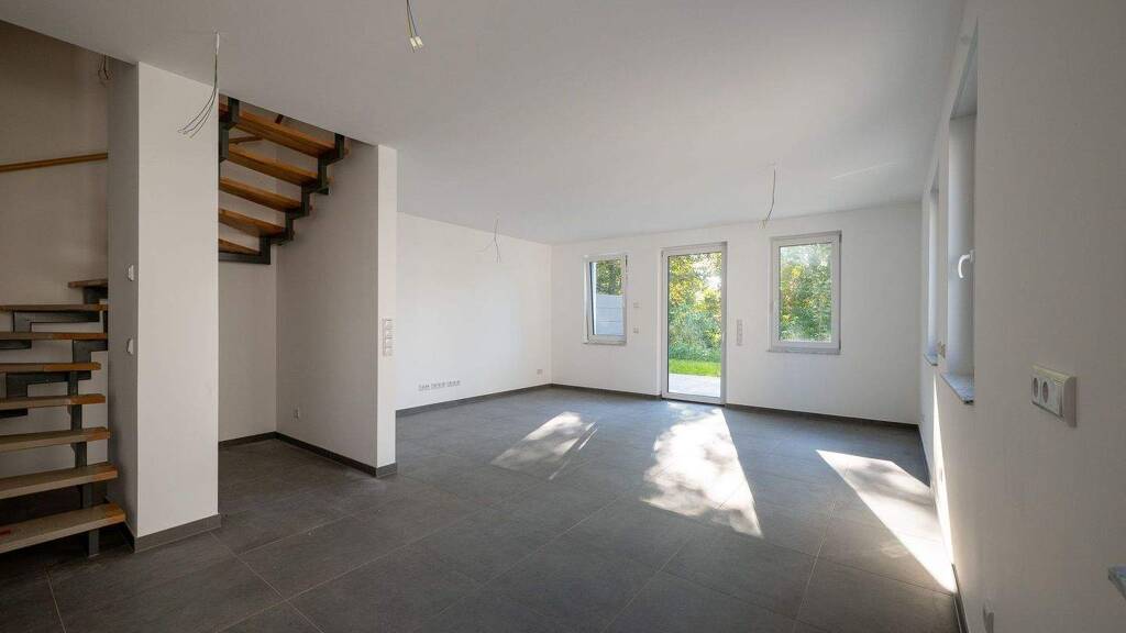 Die Grundrisse sind darauf ausgelegt, langfristig ein Zuhause zu bieten und auch bei veränderten Lebenssituationen flexibel nutzbar zu bleiben.?Der helle, offen gestaltete Wohn- und Essbereich im Erdgeschoss bildet den zentralen Aufenthaltsbereich des Hauses. Die großen Fensterflächen sorgen dabei für eine sehr gute Belichtung und unterstützen eine helle, offene Wohnwirkung. Die Ausstattung umfasst einen hochwertigen Vinylboden in den Wohnräumen sowie großformatige Fliesen im Wohn- und Essbereich, was den täglichen Pflegeaufwand erheblich reduziert.?Die integrierte Einbauküche ist bereits vorhanden und ermöglicht einen Einzug ohne zusätzlichen Aufwand in eine neue Küche. Ergänzend stehen im Erdgeschoss ein Gäste-WC (ein Anschluss für eine weitere Dusche ist vorbereitet) sowie ein Abstellraum zur Verfügung, was zusätzliche Funktionalität und Stauraum im Alltag bietet.?