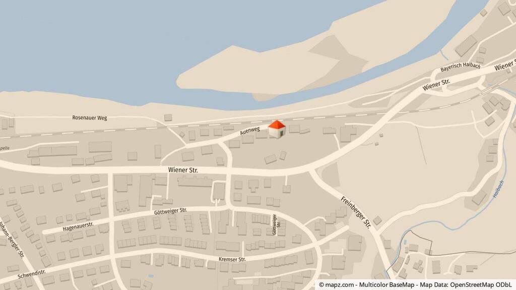 Passau ist eine Stadt in Niederbayern, Deutschland, die an der Grenze zu Österreich liegt. Der Auenweg 14 befindet sich in einem Wohnviertel namens "Grubweg", das östlich des Stadtzentrums liegt.