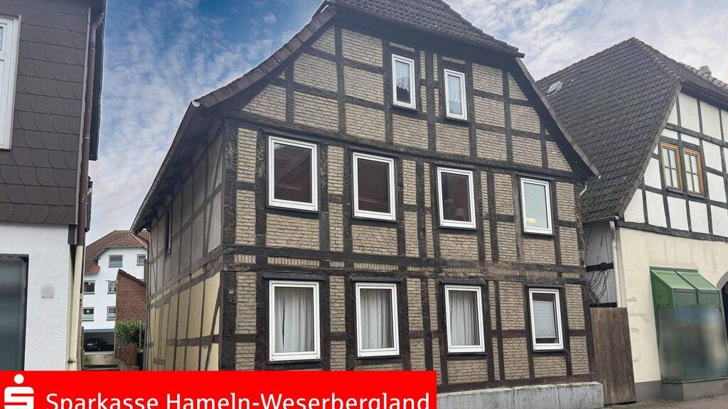 Dieses Fachwerkhaus in Aerzen bietet eine großzügige Wohnfläche von ca. 150 m² auf einem Grundstück von ca. 323 m². Das Haus ist ca. 1900 erbaut worden, wurde jedoch 2020 letztmals modernisiert. Es ist teilweise unterkellert und verfügt über ein voll ausgebautes Dachgeschoss, was zusätzlichen Wohnraum bietet. Es verfügt über sechs Zimmer, ein Bad mit Badewanne, eine Küche sowie einen Abstellraum. Es besteht kein Denkmalschutz.