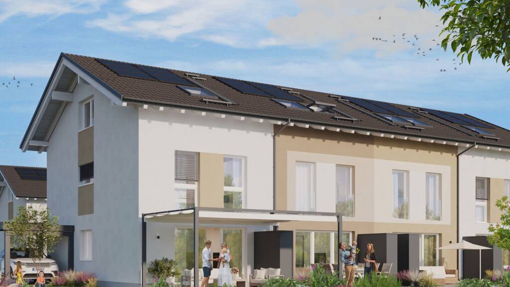Das Mittelreihenhaus mit ca. 150 m² Wohnfläche, einem Südgarten mit Terrasse und Carport bietet alles was eine Familie zum Glück braucht: Großzügige Fensterflächen schaffen helle, lichtdurchflutete Wohnräume. Der Garten mit Terrasse erweitert das Wohnangebot und lädt zum Entspannen, Gärtnern, Feiern und Spielen ein. Das Dachgeschoss ist voll ausbaufähig und individuell gestaltbar - ideal für ein Elternschlafzimmer mit Bad, Büro, Hobbyraum oder Gästezimmer. Der große Keller bietet ausreichend Stauraum und Platz für Hobby, Sport und Wellness. Sonderwünsche sind je nach Bauphase möglich: z.B.: ein größeres Badezimmer, Kachelofen, ausgebautes Dachgeschoss. Eine Photovoltaikanlage auf dem Dach senkt die Energiekosten und sorgt für energieeffizientes Wohnen in Kombination mit Fernwärme und Fußbodenheizung. Für Ihre PKWs stehen ein Carport und ein Außenstellplatz mit Vorbereitung für E-Mobilität (Leerverrohrung) zur Verfügung.