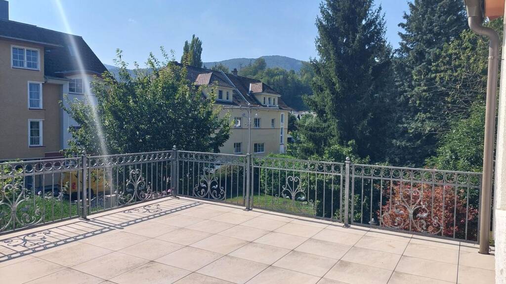 BESCHREIBUNG: Die 3-Zimmer-Wohnung im ersten Stock ist renoviert und unmöbliert, sie besticht durch die dazugehörige Terrasse mit einem wunderschönen Blick ins Grüne!