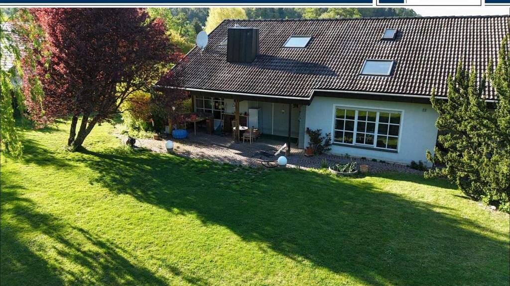 - Ca. 2.250 m² Grundstücksfläche - Ca. 300 m² Wohnfläche - Gut durchdachter Grundriss - Herrschaftlicher Eingangsbereich mit Marmorbelag - 3 Schlafzimmer mit eigenem Badezimmer - Balkon im Dachgeschoss - Einbauküche mit großem Essbereich - Galeriebereich im Wohnzimmer - Geräumiges Wohnzimmer mit Kaminofen - Überdachte Terrasse - Galerie als Büroraum nutzbar - Vielfältige Nutzung möglich - Doppelgarage mit Wendeltreppe zum Garten - Großer Garten mit Blick in die Natur