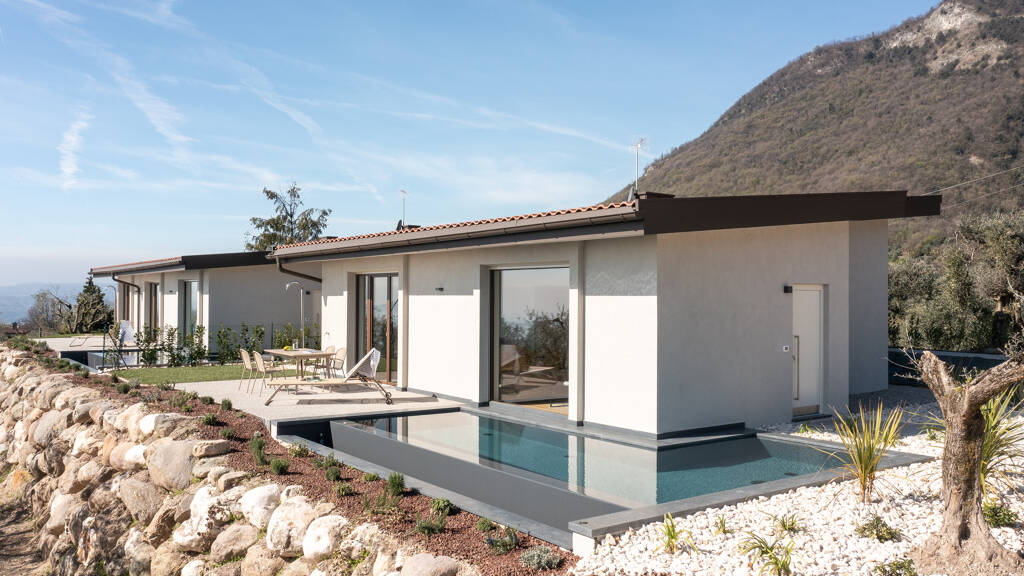 Ref: DP-066-16 NEU ERBAUTE EINZELVILLA Herrliche Einzelvilla mit atemberaubendem Blick auf den See, perfekt für diejenigen, die in Luxus und absoluter Ruhe leben möchten. Eingebettet in einen exklusiven Kontext kombiniert diese im Jahr 2024 mit ökologisch nachhaltigen Materialien erbaute Residenz zeitgenössische Eleganz und fortschrittliche Technologie, um maximalen Komfort und Nachhaltigkeit zu gewährleisten. Das helle Wohnzimmer mit seinen großen Fenstern bietet einen unglaublichen Panoramablick auf den See und schafft eine einzigartige, entspannende und raffinierte Atmosphäre. Die offene Küche, modern und komplett ausgestattet, blickt auf eine elegante Veranda, die direkten Zugang zum gepflegten Garten bietet, perfekt für Momente der Geselligkeit im Freien oder einfache Momente der Entspannung inmitten der Natur. Der Schlafbereich umfasst zwei große Doppelzimmer, darunter ein Hauptschlafzimmer mit eigenem Bad. Jedes Detail der Zimmer ist darauf ausgelegt, Intimität und Komfort zu bieten und ein Erlebnis absoluten Wohlbefindens zu garantieren. Ein zweites Badezimmer mit moderner Dusche vervollständigt den Schlafbereich. Draußen ist der atemberaubende private Swimmingpool eine ideale Frischeoase für heiße Sommertage, während der Gartenbereich den perfekten Ort zum Entspannen oder zum Beherbergen von Freunden und Familie bietet. Zum Anwesen gehören ein überdachter Parkplatz und ein Keller. Im Preis inbegriffen: Designer-Wohnzimmermöbel, voll ausgestattete Küche, Betten, Nachttische und Kleiderschränke in den Schlafzimmern sowie elegante Gartenmöbel, die diese Villa vom ersten Tag an bewohnbar machen. Eine kompromisslose Residenz, in der Luxus auf die Schönheit des Sees trifft.